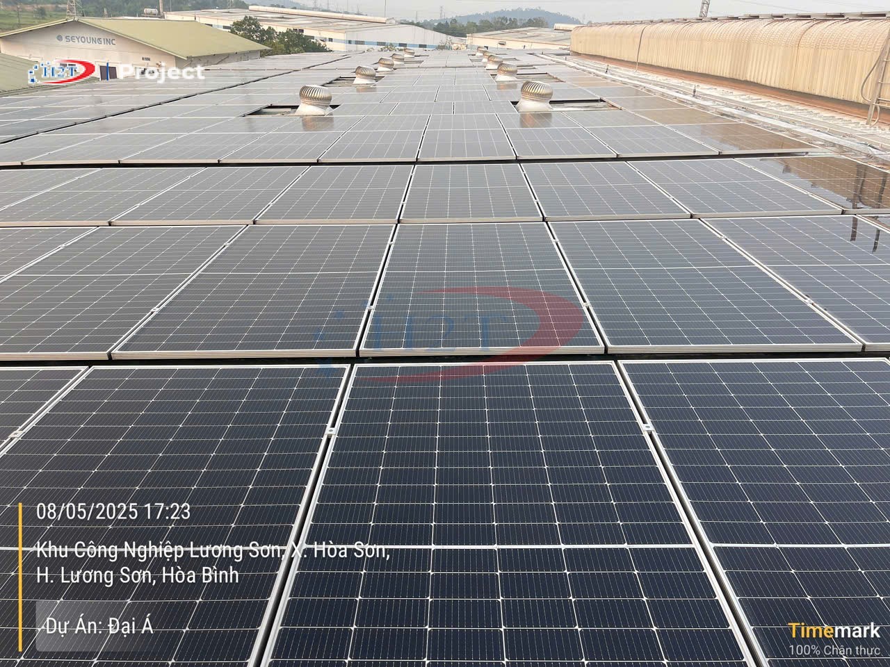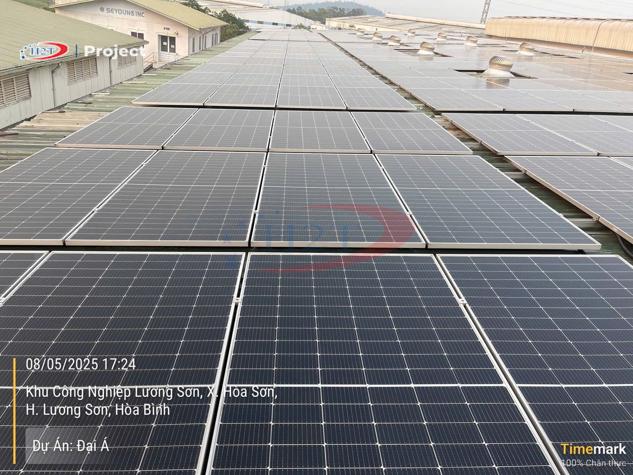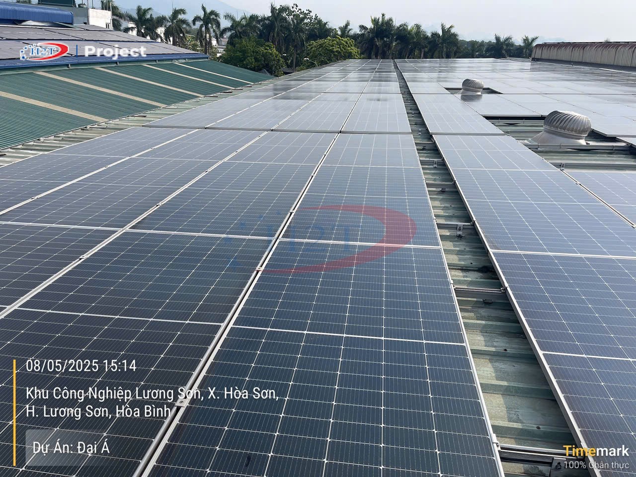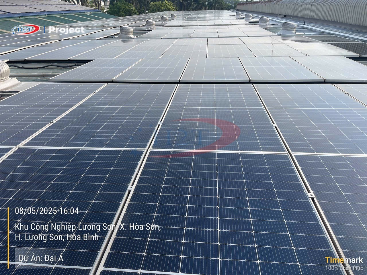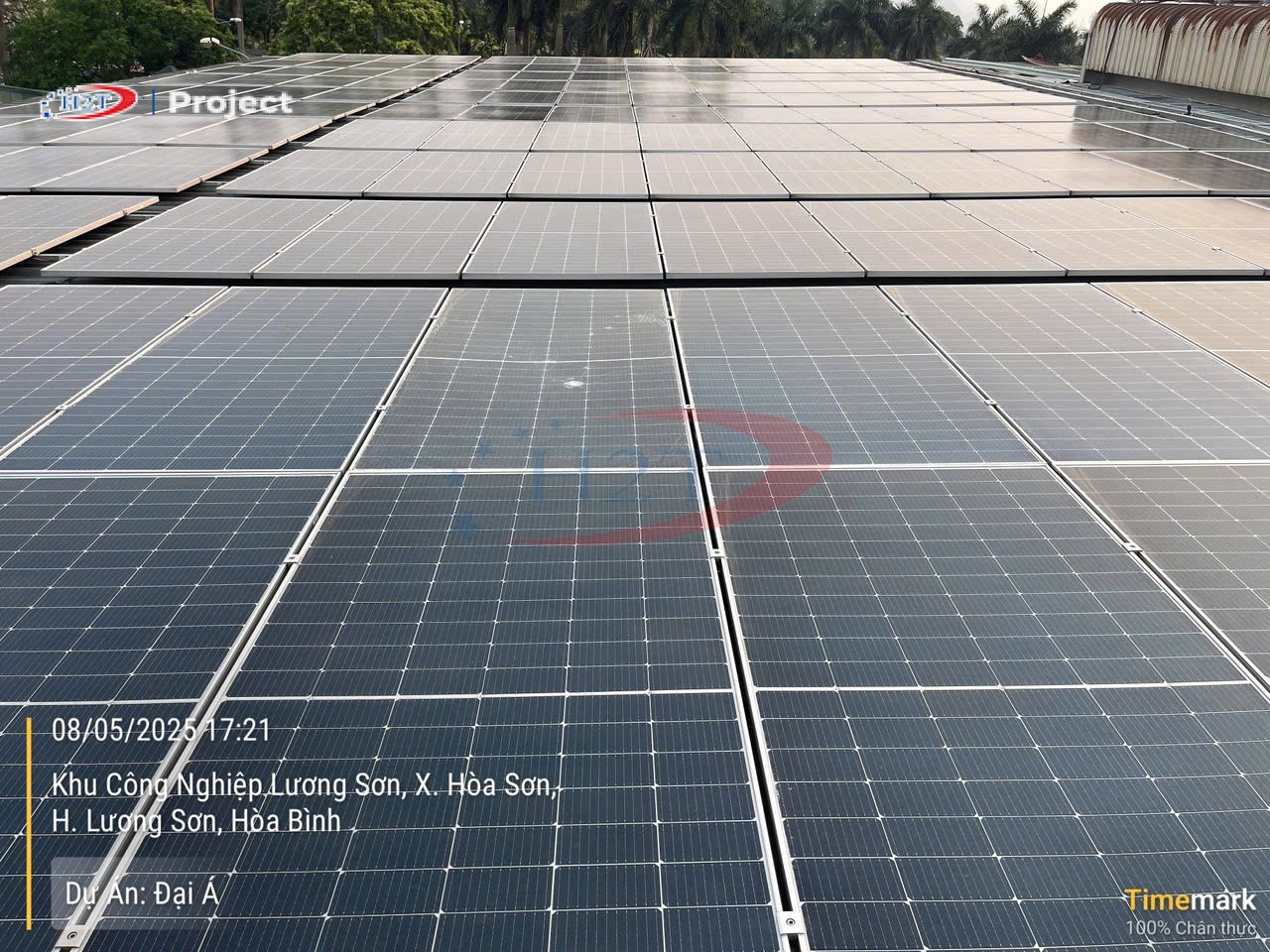 Dự án điện mặt trời Đại Á với công suất 487 kWp được lắp đặt tại Khu Công nghiệp Lương Sơn, Hòa Bình, đã chính thức đi vào vận hành từ ngày 01/03/2022. Đây là một bước tiến quan trọng của Đại Á trong việc chủ động sử dụng năng lượng tái tạo, góp phần giảm chi phí sản xuất và nâng cao hiệu quả hoạt động kinh doanh.