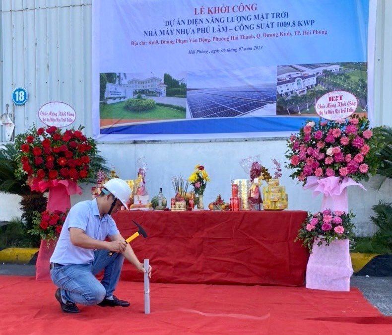 Ngày 06/7/2023 Tổng thầu EPC – Công ty thương mại H2T Hà Nội đã tiến hành khởi công, thi công Dự án điện mặt trời Nhà máy nhựa Phú Lâm, công suất 1009.8 kWp. Đến dự buổi lễ khởi công có: