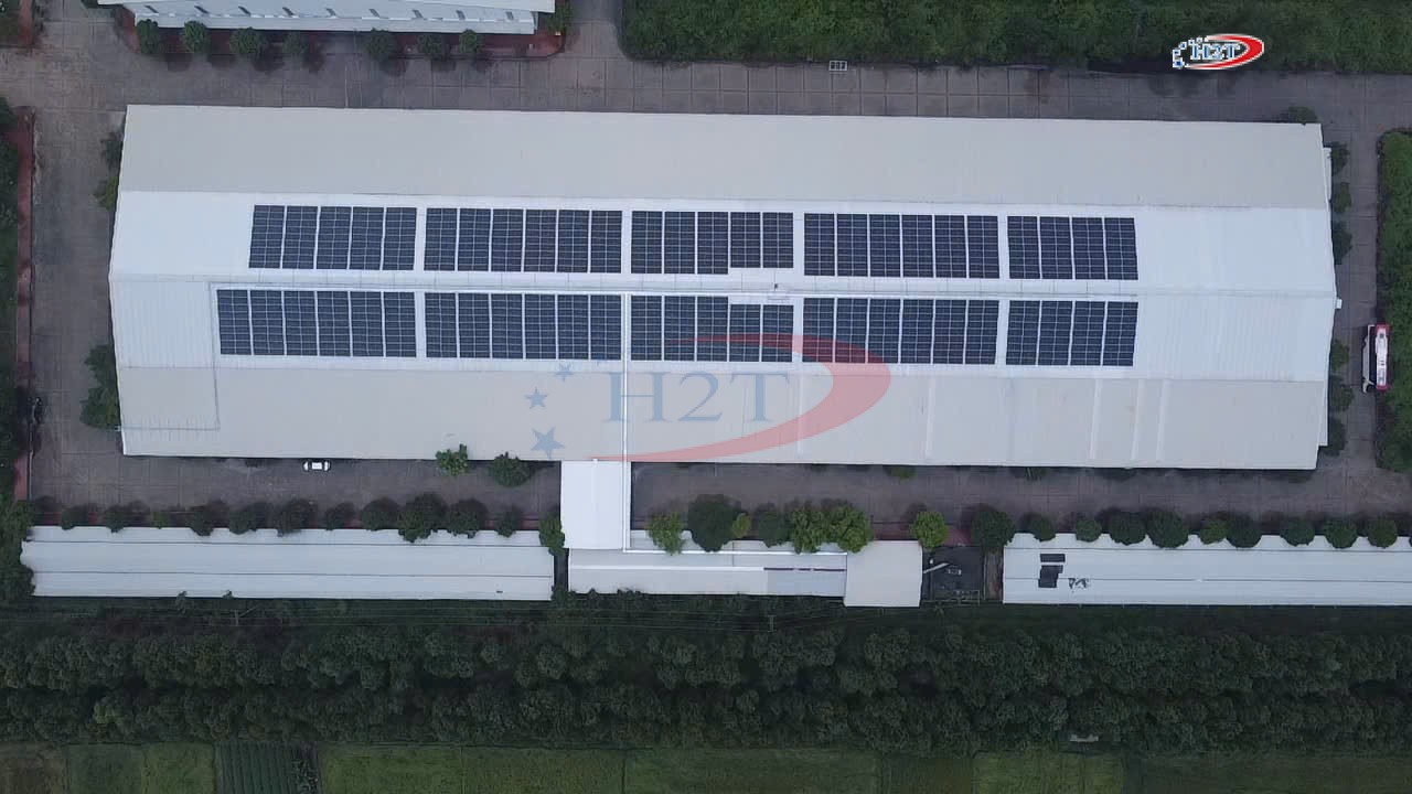 Dự án điện mặt trời áp mái DHG được triển khai trên hệ thống mái nhà xưởng tại Cụm công nghiệp Nham Sơn – Yên Lư, sử dụng các tấm pin năng lượng hiệu suất cao, inverter thông minh, cùng giải pháp thiết kế – lắp đặt tối ưu do đội ngũ kỹ sư H2T Hà Nội trực tiếp thực hiện.