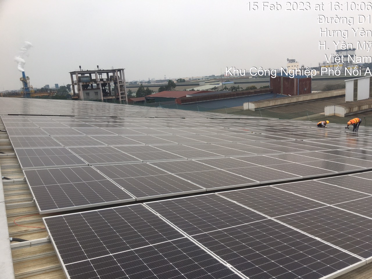 Dự án điện mặt trời nhà máy Vipaco tại KCN Phố nối A, xã Giai Phạm, huyện Yên Mỹ, tỉnh Hưng Yên được khởi công ngày 28/10/2022. Cho đến nay, sau 3 tháng thi công dự án đã và đang dần đi vào hoàn thiện, đóng điện chạy thử.